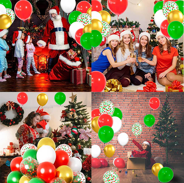 Niun®Коледна смесена цветна балонния комплектсе основава на12 -инчов латекс балони коледните визуални символи са точно гравирани: