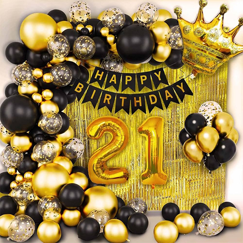 21-ви комплект арки от гирлянди от балони: Този комплект от 21-ви арки от гирлянди от балони, основните цветове са черно, златно, сребристо и т.н., което е много подходящо за украса на мъже и жени на 21-ия рожден ден. Те могат да бъдат окачени на вратата или стената, а също така са много подходящи за вътрешна и външна употреба за създаване на уникално парти за 21-ви рожден ден за мъже или жени.