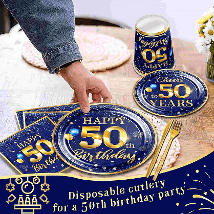 Комплект съдове за еднократна употреба за 50-ти рожден ден съдържа 7-инчова десертна чиния, 9-инчова чиния за основно ястие, абсорбираща салфетка, пластмасов нож за храна, вилица и лъжица. 7-инчовата хартиена чиния е подходяща за торти и закуски, а 9-инчовата хартиена чиния може да побере ястия за вечеря. Салфетките са меки и удобни за кожата, силно абсорбират вода, пластмасовите ножове, вилици и лъжици са здрави, безопасни и нетоксични и могат да бъдат изхвърлени веднага след употреба, като по този начин спестяват проблеми с почистването, време и труд. Нашият комплект за украса с балони за 50-ти рожден ден е подходящ за рождени дни, годишнини, пенсиониране и други специални поводи. Дайте пълна свобода на творчеството си и използвайте тези декорации в различни сцени, за да направите всяка дейност по-прекрасна и незабравима.