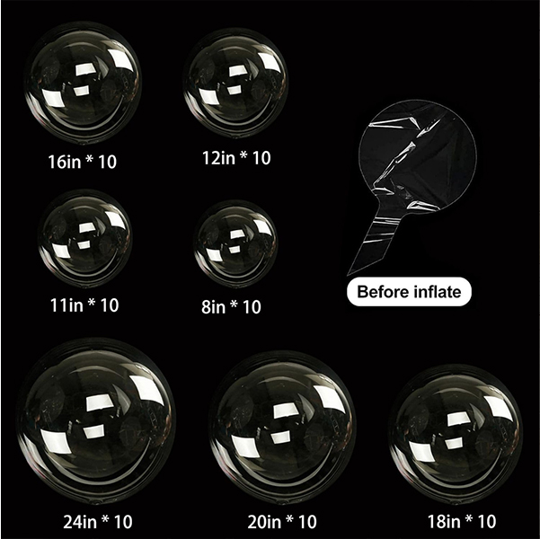 Цветните балони за балончета са изработени от TPU, нетоксичен, многократна употреба и силно еластичен материал. Те могат да бъдат надути с ръчна въздушна помпа, а тези прозрачни кристални балони са подходящи за различни случаи, като партита за рожден ден, бебешки душове, сватби, Коледа, Хелоуин, новогодишни партита, тържества по дипломиране и други.