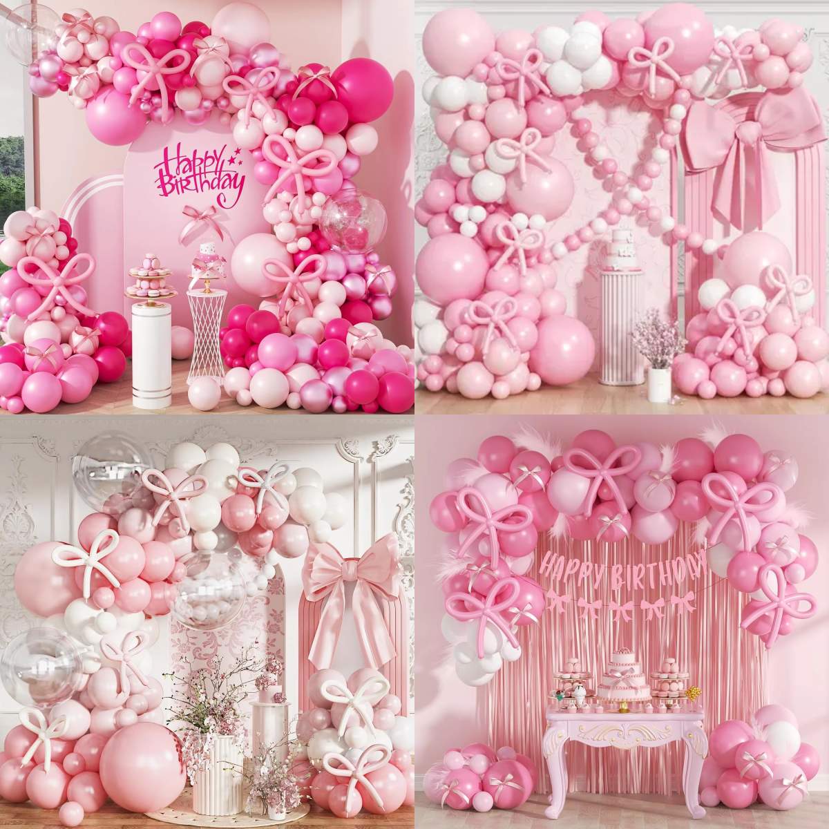 Класният комплект за балон с розов лък арка перфектно съвпада с всички изисквания на момичета за сладки теми. Комплектът за парти за рожден ден е много добър избор за бебешки партита за добре дошли, сватби, ергенски партита и др. Тази прекрасна розова балонна гирлянда е свежа и красива. Ако сте на път да проведете парти, това определено е вашият перфектен избор. Лъковете на балоните гирлянди могат да бъдат направени сами, което ви позволява да изпитате забавлението на „Направи си сам“! Ако смятате, че стаята ви се нуждае от повече декорации на лък, можете също да ги добавите в стаята си.