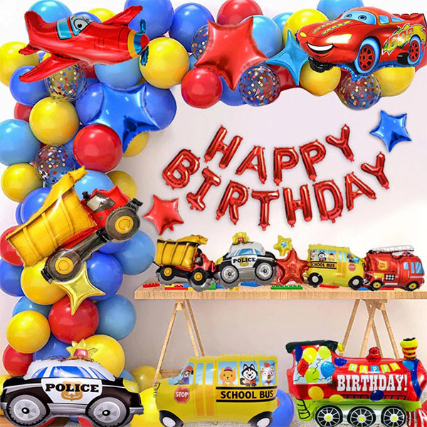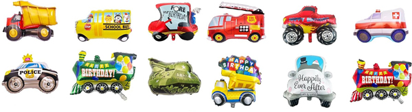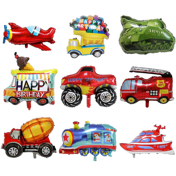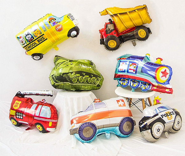 Ако искате да използвате в малки партита или като декорации. Можете да изберете малките комплекти фолиеви балони с анимационни превозни средства, които съчетаваме за вас. Този комплект обикновено включва голям фолиен балон с анимационно превозно средство, 18-инчов кръгъл фолиен балон и 18-инчов фолиен балон със звезда. Тези балони изглеждат много красиви и могат да подобрят красотата на снимките. Декорирането му на основната стена позволява на гостите да направят идеални снимки в социалните мрежи, защото както знаем, без снимка с перфектен фон партито не е пълно.