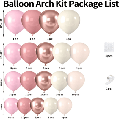Малък комплект прашен розов балон:Този малък комплект се състои от 50 до 80 бр розови балони. За да подсилите ефекта на наслояване на комплекта, можете да добавите бели, кайсиеви и прозрачни балони. Използвайте хелий, за да ги напълните и след това можете да използвате панделка, за да завържете и след това да ги оставите да се носят във въздуха.