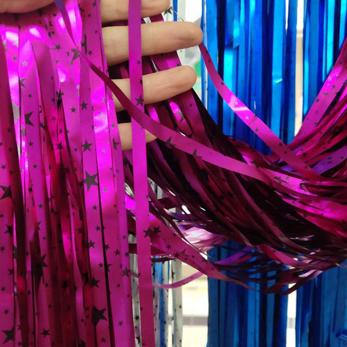 ①Rich и разнообразни цветове, включително плътни цвят, лазерен цвят, цвят на макаруни и др., И някои завеси от фолио имат блясък и постепенни ефекти на промяна, а също така могат да бъдат проектирани в различни форми, като пет звезди, прасковени сърца и т.н., които могат да добавят акценти към сцената и да създадат уникална атмосфера.