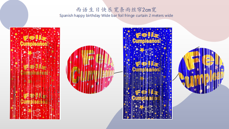 Завесата на фолио с цветове на дъгата, цветове на макаруните и други цветови комбинации са подходящи за детски рождени дни. Има и лъскави завеси за фолио като злато и сребро, които са подходящи за партита за рожден ден за възрастни, празненства на годишнината и др. Те могат да бъдат подредени на партийни обекти, хотелски банкетни зали и др.