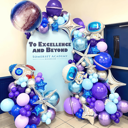 Гирлянд с балони с тема Galaxy се предлага с високо качестволатексови балонии фолиеви балони. Цветовете на балоните са лилаво розово синьо и сребристо, което е символ на галактиката. Този пакет е силно предпочитан от много хора, включително любители на астрономията и космическите ентусиасти. Следователно може да доведе до отлични резултати от продажбите за вашия бизнес.