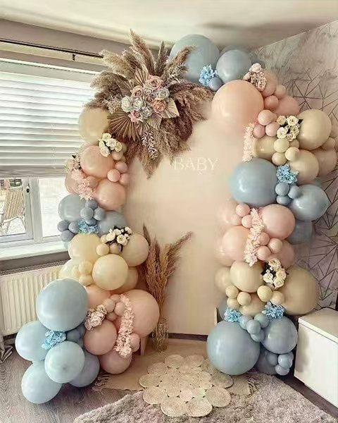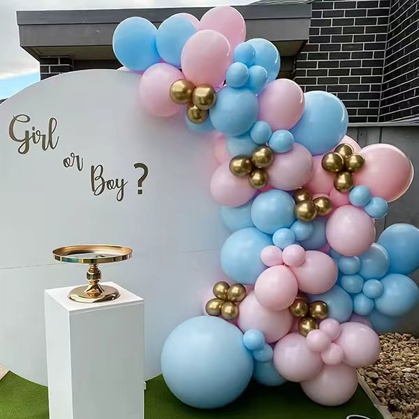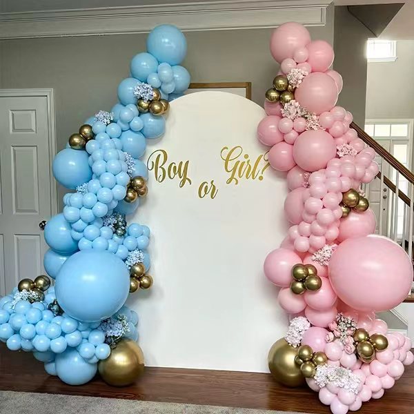 Комплект арки с балони за разкриване на пола Тези розово-сини балони са подходящи както за големи тържества, така и за топли събирания. Те са идеални за декориране на зони за снимки, десертни маси, входове или открити пространства, незабавно подобрявайки атмосферата и лесно съчетавайки различни парти теми, вариращи от елегантни до ежедневни.