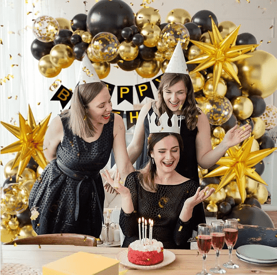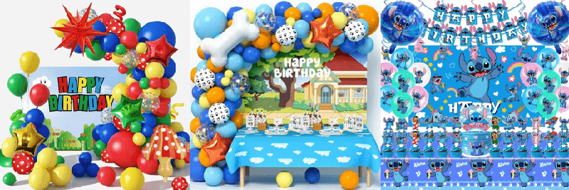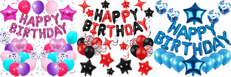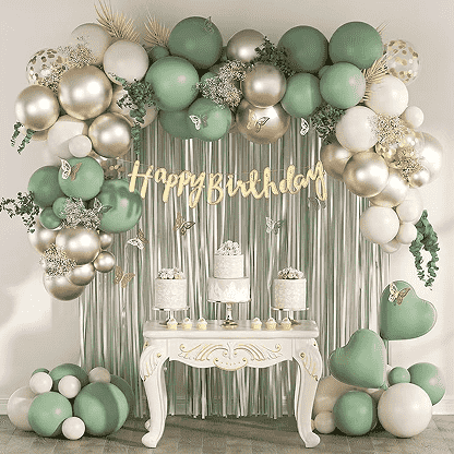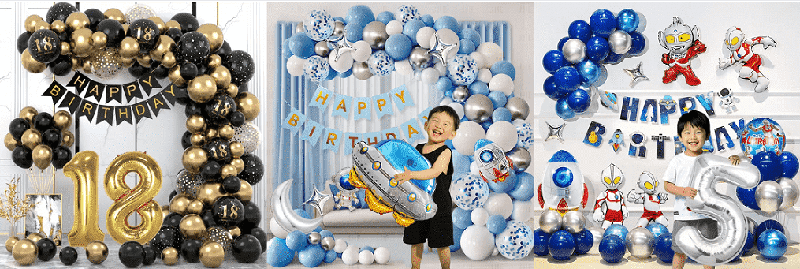 Основният стил е латексов балон Happy Birthday в същия или допълващ се цвят, сЧестит рожден ден писмо фолиеви балониилифолиеви балони с номера. Класическите стилове включват Macaroon прахообразен гел балон, розов фолиен балон Happy Birthday, черен латексов балон, фолиен балон със златисто число. Латексовите балони могат да бъдат нанизани във верига от балони и окачени на стената или тавана, с фолиеви балони като визуален център и малко количество декорация от панделка за бързо създаване на семпла и текстурирана парти атмосфера.