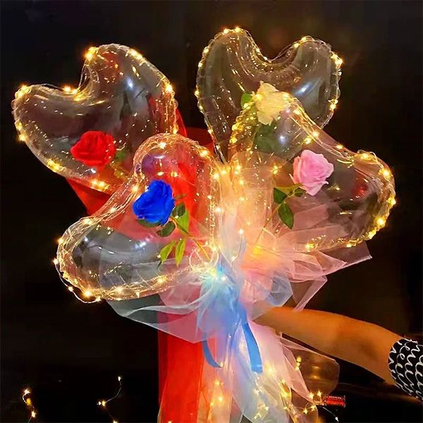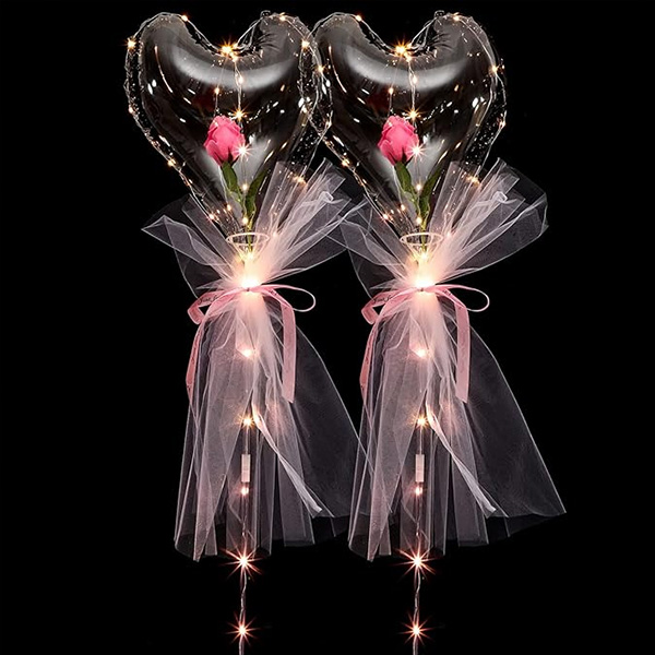Този произведен от нас комплект балон бобо с формата на сърце съдържа балон с вълна във формата на сърце, изкуствено розово цвете, светодиодна лампа, осветителен стълб, панделка и марля. Този комплект рози бобо с форма на сърце има разнообразие от изкуствени рози, от които да избирате. Съчетали сме го с панделки и прежди в съответните цветове. Размерът на този бобо балон във формата на сърце е 7-8 см, което ви позволява да пълните цветя без да използвате разширител за балон или машина за пълнене на балони. Тези прозрачни пластмасови балони са много подходящи за различни поводи, като сватби, годежни церемонии, тържества за дипломиране, рождени дни и различни сцени на събития, които лесно могат да добавят нотка елегантност към вашите дейности.