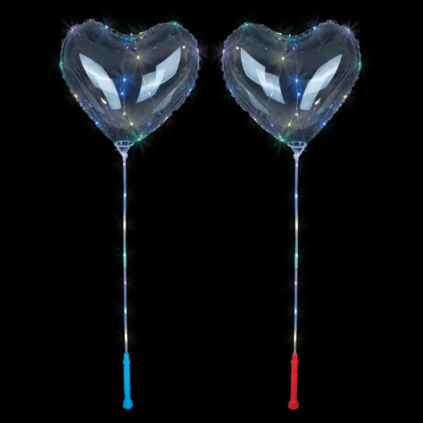 За този комплект бобо балон роза във формата на сърце имаме също стълб за теглене бобо балон и светеща кутия. Тегличът с балон се състои от 35 см прът, балонна чаша и малка пластмасова тръба. Светодиодната лампа се захранва от 2 батерии АА, батериите не са включени в комплекта на доставката. Светлинната кутия е разделена на жълти LED светлини и цветни LED светлини. 3-те настройки за мигане на светодиода ви позволяват да зададете бързо мигане, бавно мигане и без мигане. Променете настройките на балона, за да получите прекрасни многогрупови ефекти.