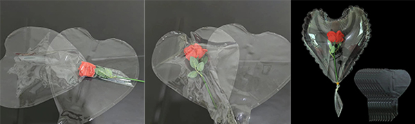 Балонът бобо във формата на сърце, произведен в Китай, е не само с добро качество, но и методът за изработка на този комплект е много прост. Просто запушете изкуствените рози от надуваемия отвор на балона и след това го надуйте. Можете също така да си направите сам комплект бобо балони във формата на сърце според вашите собствени идеи. Можете да поставите изкуствени рози, пера или малки бонбони в бобо балона във формата на сърце. В същото време този бобо балон във формата на сърце има малки дупки около себе си, които могат да бъдат вмъкнати в леки връвчици или други декорации, за да се създаде невероятен визуален ефект.