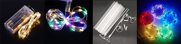 LED светещи ленти, пластмасова тръба, балонна чаша, перо |