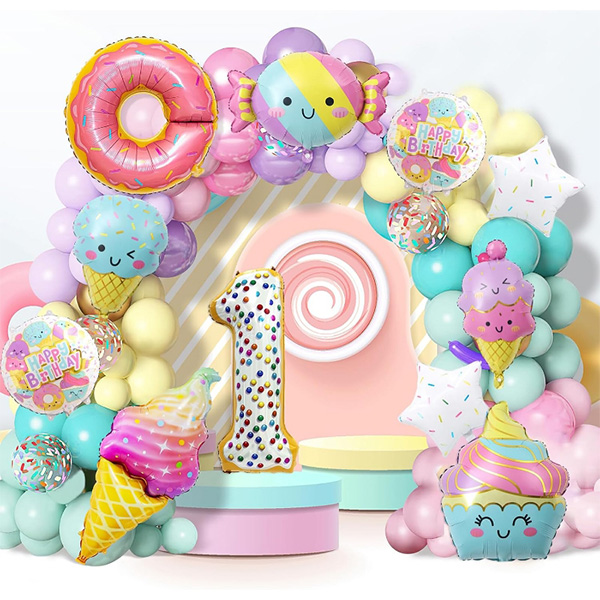 Нашата фабрика пусна и гирлянди от балони с балон от фолио за сладолед, този гирлянд от балонна арка включва балон от фолио за сладолед, латексови балони, точки за залепване на балони и други аксесоари. Всички те са изработени от висококачествени фолийни материали и естествен каучук, които са безопасни за околната среда и без замърсяване. Тези балони от фолио за сладолед, произведени в Китай, могат да ви помогнат да създадете перфектната парти сцена. Ярките цветове и изящните шарки ще направят вашето парти по-очарователно и ще донесат на вашите деца тематичното парти на мечтите им.