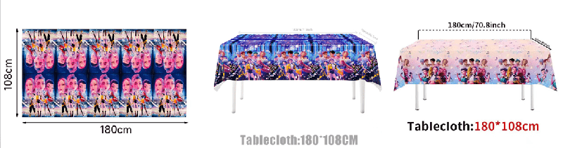 Покривката е изработена от хранителни материали. Продуктите са водоустойчиви, маслоустойчиви и без мирис. Когато се постави на масата за хранене, той може да предпазва плота и да допълва декорации като сервизи и банери, правейки цялата сцена по-сплотена. Ние предлагаме персонализирани шарки и размери на продукти за покривка за декорация на балон K-POP Demon Hunters, за да предоставим повече възможности за декорация на парти.