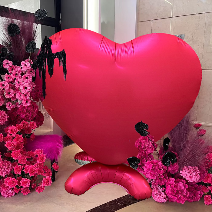 1. Използвайте самостоятелно:Големият балон с червено сърцее 66 -инчов огромен балон, който има функция, която други декорации не могат да съвпадат. Балонът от 66 -инчово сърдечно фолио може да бъде поставен във всеки ъгъл като независима огромна декорация на балона с червено сърце.