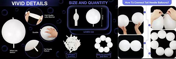 Нашите балони за бързи връзки се открояват с уникалния си дизайн от край до край, премахвайки нуждата от инструменти. В сравнение с традиционните балони, процесът на свързване на балони за усъвършенствани връзки е по -прост и по -бърз, което ви позволява да украсите по -ефективно вашето парти или място за събития.