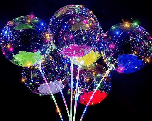 LED дръжка Bobo Balloons включва предимно LED светлина, балон Bobo и цветна дръжка.