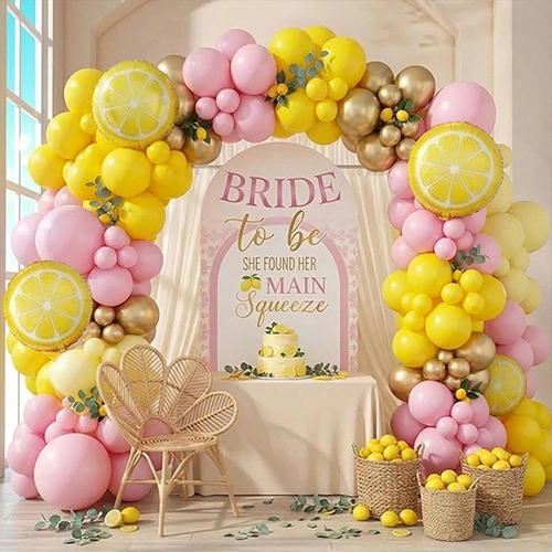 Нашият гирлянд от лимонови балони е съсредоточен върху свежите и лечебни лимонови елементи и е съчетан с богати комбинации от балони, за да създаде пълна атмосфера и идеален за всякакви популярни парти сцени.
