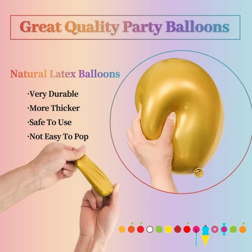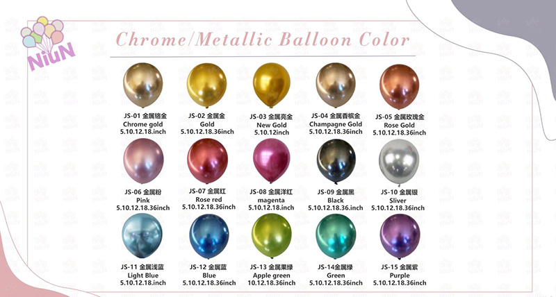 Малките комплекти висококачествени балони в цвят металик използват удебелен, високоеластичен латекс. Имат огледална лъскава повърхност. Светлината се отразява от тях. Създава богат, блестящ метален ефект. Обикновените латексови балони изглеждат плоски и матирани. Тези балони изглеждат от висок клас. Те също хващат окото веднага.