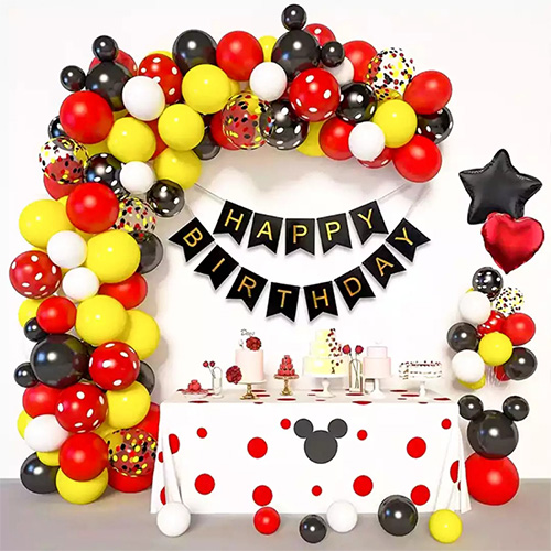 Хартиеният банер за рожден ден е ярко оцветен и красиво шарен, а завесата от фолио е лека и елегантна, добавяйки романтична атмосфера към цялата арка. В допълнение, дизайнът на тази арка с балон Мики Маус е уникален и подходящ за партита за рожден ден на момчета и момичета, което може незабавно да подобри оживената атмосфера на сцената.