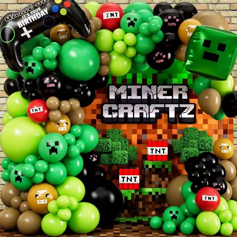 Minecraft Foil Foil Balloons смесва въображението и елементите на играта. Те имат много 3D форми на символи. Героите включват Стив, Creeper и Enderman. Всеки от тях копира подробности за играта. Има и предмети като диамантени мечове, TNT блокове и контролери на играта. Те правят партито декорации по -забавни и богати. Всеки балон използва пиксел стил. Creeper има зелен блок. Стив има синя риза. Детайлите карат света на блока да се чувства така, сякаш е на истинската партия.