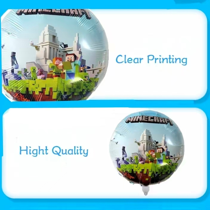 Тези балони от фолио използват удебелено фолио. Те държат добре въздух. Те остават пълни от началото до края на партито. Материалът е труден и труден за разкъсване. Острите обекти не ги пробиват лесно. Те поддържат формата си дори в оживено парти. Печатът използва екологично мастило. Цветовете са ярки и не избледняват лесно. Дори след много употреби, моделите остават ясни. Детайлите на пикселите остават остри. Те дават на играчите дълготраен, безопасен и истински празник на Minecraft.