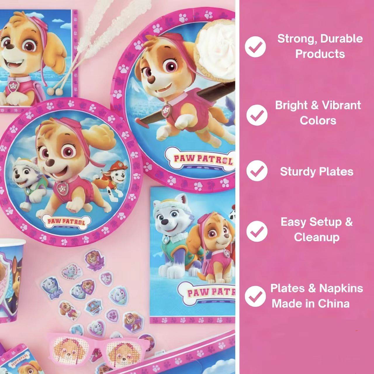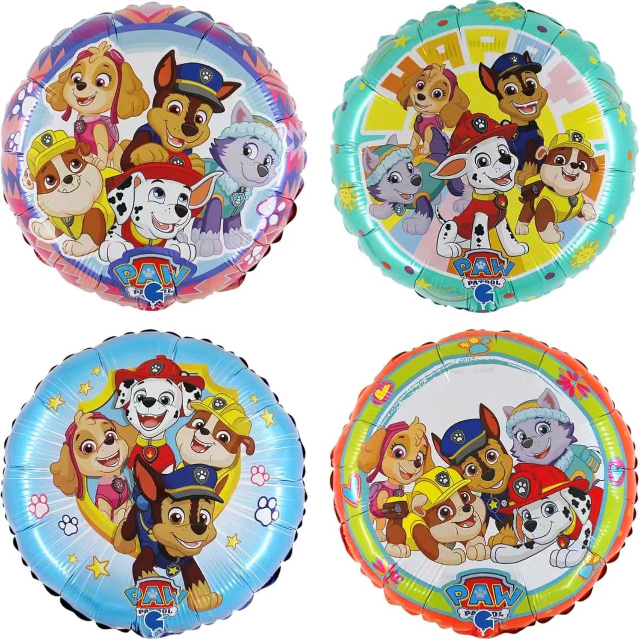 Кръглите парти фолиеви балони Paw Patrol имат ярки привлекателни цветове и разбира се изображения на главните герои. Тези балони биха се поддали добре на съчетаване с фолиеви балони с тематична форма, като звезди и кости, също направени от 3D фолио като по-закачлива комбинация. Можете да ги наслагвате на различни височини и да си тръгнете с анимирана декорация. Тези готови продукти няма да паднат и ще стоят „нагоре“ по-дълго от обикновените балони.