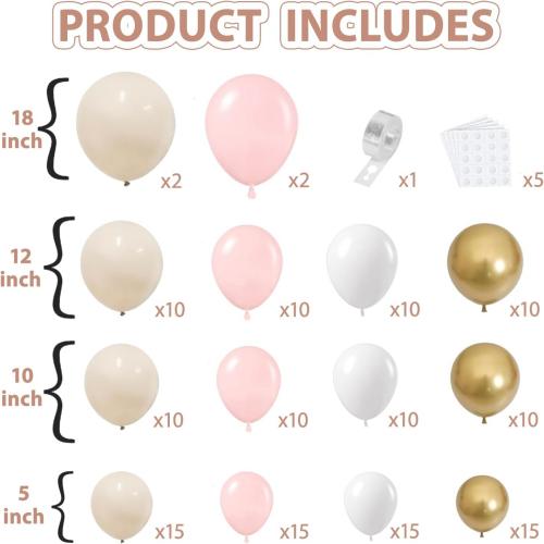 Комплектът Pink Beige бяла балонна арка на марката NiuN използва латексови балони с много по-високо качество от тези на своите връстници.