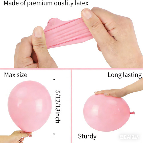 Суровини за балони: Изработен от чист естествен латекс, внесен от Югоизточна Азия. Балоните са по-гъвкави, могат да бъдат издухани до по-големи размери, по-малко вероятно е да се спукат и могат да бъдат напълно естествено разградени, без да причиняват замърсяване на околната среда.