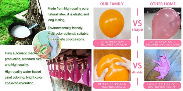 По-здрава текстура: Благодарение на използването на висококачествени суровини и модерна технология, всеки от нашите латексови балони има много здрава текстура и богати цветове.