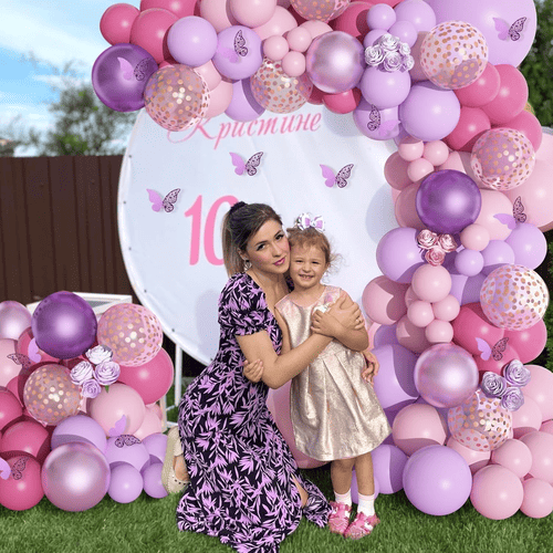 Комплектът гирлянди от розови лилави балони е един от най-продаваните комплекти балони в NiuN®. С атрактивни цветове и лъскава повърхност, той е обичан от много хора, особено от момичета. Предлага се с различни латексови балони. Цветът им е розов и лилав. В допълнение към обикновения латексов балон добавихме и балони с конфети, за да увеличим повече слоеве.