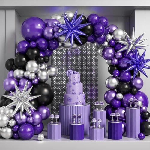Висококачествените комплекти гирлянди с лилави и черни балони ви позволяват да комбинирате и комбинирате черни и лилави балони. Те могат да бъдат комбинирани черни и лилави балони със сребърни балони или балони от сребърно фолио, за да подчертаят комплектите арки с гирлянди от балони. Той е идеален за абитуриентски тържества, церемонии за възрастни и други важни тържества, въплъщавайки усещането за ритуал, когато човек се сбогува с младостта и стъпва в зрелостта. Те също могат да бъдат комбинирани черни и лилави балони със златни балони или балони от златно фолио. Той е идеален за поводи като корпоративни годишнини и откриване на нови магазини, тъй като излъчва професионализъм и изтънченост, като същевременно предава имидж на марка от висок клас и с добра репутация. Те също могат да бъдат съчетани със сини балони, за да създадат футуристичен вид. Тези комплекти с балони са особено подходящи за партита с електронни спортове, модерни и научна фантастика, предлагайки поразително визуално въздействие.