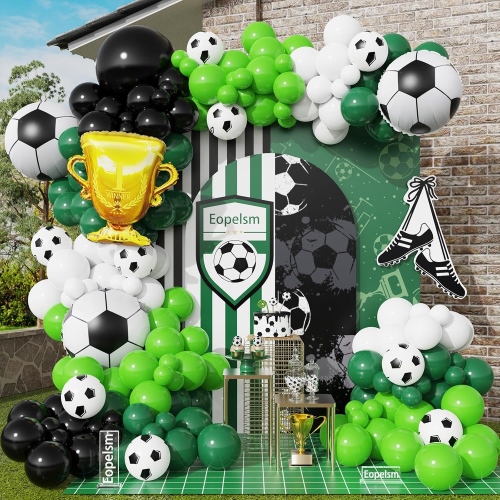 Препоръчвам закупуването на този продукт, тъй като нашите комплекти гирлянди за парти с футболни балони се предлагат в богато разнообразие от стилни и тематично координирани дизайни, идеални за издигане на всяко спортно тематично тържество, парти в деня на играта, събитие за рожден ден или събиране на футболен турнир.