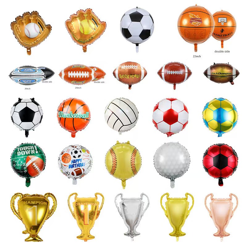 Дизайнът обхваща моделиране на спортна екипировка, баскетбол, футбол, дъмбели, трофеи, силуети на спортни фигури, "WIN", "GOAL" и "CHAMPION" и други поощрителни букви. Един балон с голям размер (18-36 инча) не се нуждае от сложно съпоставяне и може да се превърне във визуален фокус, когато е окачен в центъра или на входа на дейността. Той е особено подходящ за сцени като аплодисменти за мащабни събития, спортни дейности на открито и спортни игри в кампуса, незабавно запалват ентусиазма на сцената.