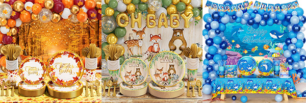 Страните са основна употреба за хартиени прибори за хартия NIUN®. Сдвояването с набор от тематични гирлянди с балони може да подобри темата. Всяка гирлянда на балона има съответна тема и предлага разнообразни цветове за перфектно координиране с различни набори за прибори за прибори за хартия. Сдвояването на хартиени прибори за хранене със съответните тематични стилове на Balloon Garland ще създаде ослепително парти!