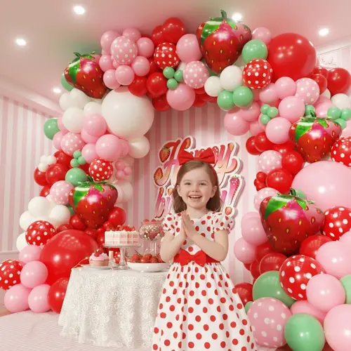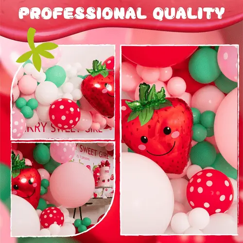 В комплекта се доставя гирлянд с балон с ягодова тематикависококачествен латексов балони балон от фолио. Със сладкия стил на ягода, той е обичан от много клиенти по целия свят. По този начин те са постигнали добри продажби за всички наши клиенти.