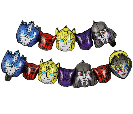 Фолиевият балон Transformers е многофункционална парти декорация и интерактивен продукт, базиран на класически герои, пресъздаващ емблематичните форми и цветове на основни герои като Оптимус Прайм, Бъмбълби и Мегатрон. Продуктите включват очарователна система Q-версия и стандартни серии за намаляване на пропорциите, включително различни размери от 18 инча до 36 инча, които са подходящи за семейни партита, търговски дейности, подаръци и други поводи. Материалът на продукта използва материал от алуминиево фолио за хранителна защита на околната среда и усъвършенствана технология за печат, която е безопасна и нетоксична и също така осигурява възстановяване на детайли с висока разделителна способност. Това е горещо продаван единичен продукт с диференциация и конкурентоспособност в трансграничната търговия.