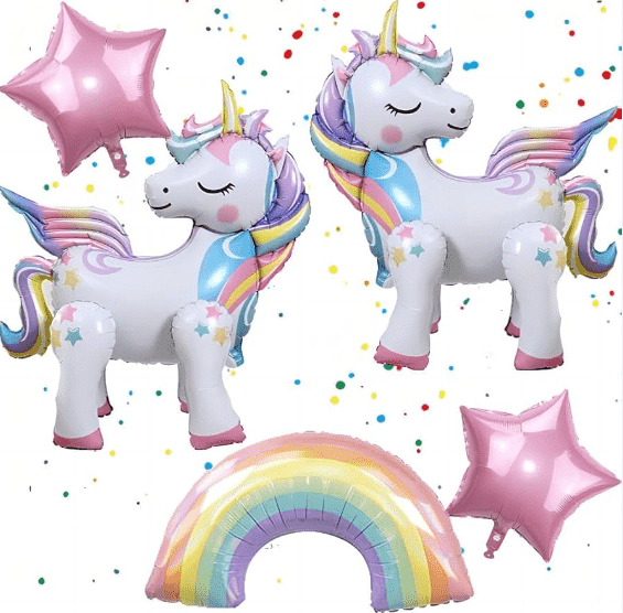 Балони на тема еднорогсе основават на основната тоналност на фантастичните приказки. Те са разделени в две основни категории: балони с еднорог с щампа латекс и фолиеви балони с еднорог. Те също така включват триизмерно моделиране, модели на фенери и други производни. Те са популярни елементи за украса на партита.