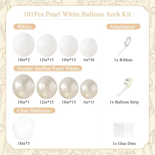 да бяла сватбена арка от балон се предлага с подробно ръководство за сглобяване и инструменти за верижка от балон. Начинаещите могат лесно да завършат декорацията без професионална помощ и да създадат атмосфера на балон за 1-2 часа.