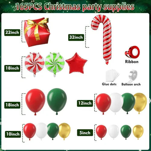 Коледна арка с балон идва свисококачествени и цветни латексови балонии фолиеви балони. Предлаганият от нас латексов балон е изработен от 100% суров латекс, който е внос от Югоизточна Азия. Като суровина, която използваме, и екологично чисто мастило, което използваме, балоните са напълно екологични и безвредни за децата. Цветът на балоните е предимно червен и зелен, които представляват Коледа. За да добавим малко декорация, включихме и златни балони. Общият стил на коледната балонна арка е щастлив, привлекателен и пълен с енергия.
