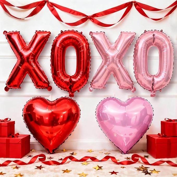 Романтичен комплект за Свети Валентин: Центриран върху балон от фолио "XOXO фолиеви балони", съчетан с балон във формата на сърце, латексов балон с пайети и украсен с панделки и лепилни точки. Цялостният дизайн е пълен със сладък дъх, идеално прилепнали сватба, брак, изповед и други романтични сцени, точно за да отговори на потребителските нужди на двойките.